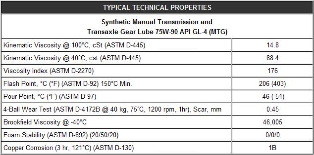 Recommended for automotive and light-truck applications that require synchromesh transmission fluid. Applications include manual transmissions and transaxles such as New Venture NV T350, NV 1500, NV 2550, NV 3500, NV 3550, NV 5600, and Tremec T4, T5, T18, T56, T176,TKO500, TKO600, TR 3450 and TR 3550. Replaces MTF-94 fluid for Land Rover, MG, and Mini Cooper. Replaces Honda Genuine MTF fluid for manual transaxles and Texaco MTX fluid. Not for use in engines, hypoid rear axles, limited-slip or wet clutch applications.