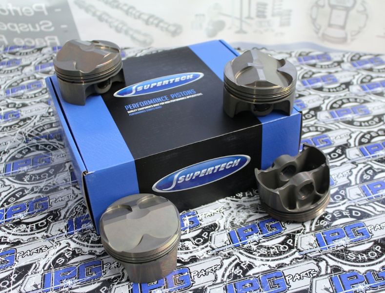 | Supertech Pistons are manufactured in Argentina with technology transferred from European manufacturers. Our pistons are manufactured from extruded high silicon, enhanced 4032 alloy (with additional Cu, Ni & Mg) that has low thermal expansion, excellent wear resistance and higher thermal conductivity. Our pistons with this alloy have withstood up to 42psi of turbo boost, with alcohol, without any problems. A 2 or 3 step forging process yields a fine structural grain oriented fibers in the same direction of the stresses. Several heat treatments provide the piston with a high tensile strength and evenly distributed hardness. The pistons are submitted to several machining steps in specially designed machines and in conventional CNC machines with special diamond tools for dimensional precision, perpendicularity and flatness of the ring grooves. Contact reduction grooves are standard. Honed & reamed pin bores for precise fit. Wrist pins are constructed of cold extruded chrome moly steel for high strength to be used with wire clip locks. *Includes: Pistons, Rings, Wrist Pins, and Locks* Bore: 87.00mm Over Size: +1.0mm Comp Ratio: 12.5:1 Volume CCs: 11.4 Head CCs: 50.7 Comp Height: 1.181"(30mm) Stroke: 3.386" Rod Length: 5.472" Pin Diam: 22mm(.866") Weight: 325 Piston P/N: P4-HK87-P15 Ring P/N: GNH-8700 |